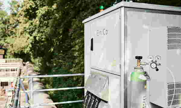 Für den rauen Einsatz in Kläranlagen entwickelte das Unternehmen ein passgenaues, wetterfestes IP54-Outdoorgehäuse. Integrierte Klimatisierung gewährleistet stabile Temperatur- und Luftfeuchtebedingungen, sodass die empfindliche Sensorik – einschließlich des Prozess-Massenspektrometers – zuverlässig arbeiten kann. Das Gehäuse schützt die Elektronik vor Staub und Spritzwasser und ist für feuchte, korrosive Umgebungen ausgelegt.