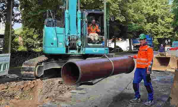 Entsprechend des Schadensbildes haben die Verantwortlichen eine geeignete Sanierungsstrategie gesucht, die Wirtschaftlichkeits- und Nachhaltigkeitsaspekten gleichermaßen gerecht werden sollte. „Im Vorfeld wurden verschiedene Verfahren geprüft – so auch eine grabenlose Sanierung mit einem Schlauchliner – aber insbesondere vor dem Hintergrund der hydraulischen Überprüfung war das keine Alternative“, so Berdajs weiter. Die Entscheidung fiel schließlich zugunsten einer grundhaften Erneuerung des Mischwassersammlers zusammen mit den Wasserleitungen und anschließendem Straßenbau. Zudem wurden die Hausanschlüsse im Rahmen der Baumaßnahme überprüft und bei Bedarf bis zur Grundstücksgrenze erneuert.